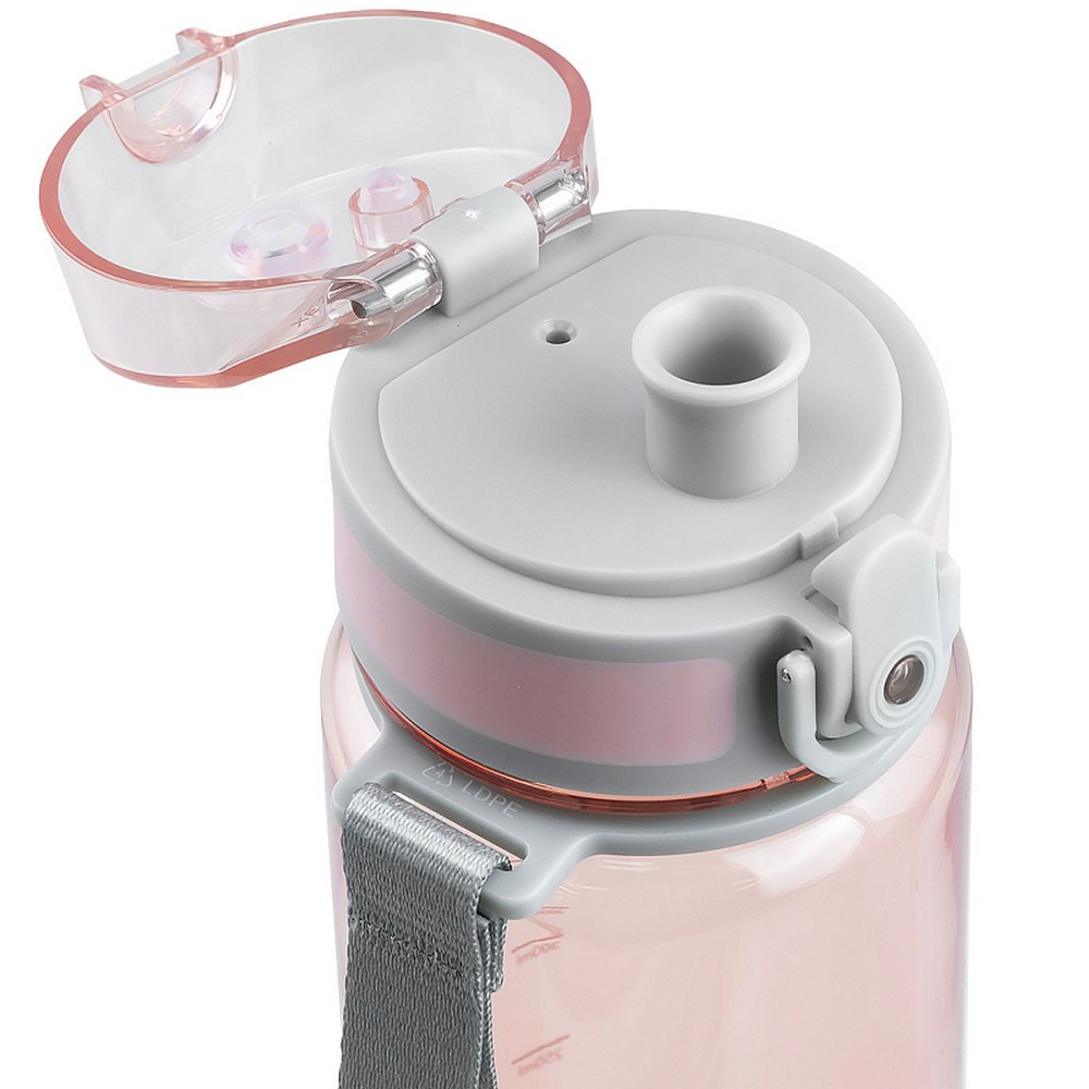 Носик бутылки надежно защищен откидной крышкой от любых загрязнений, а замок с фиксатором предотвращает случайное открывание.