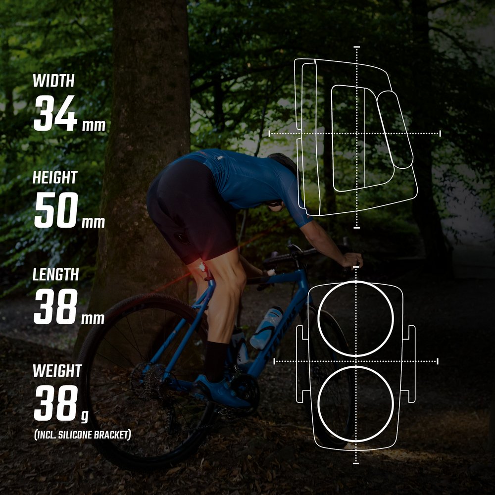 Для установки BUSTER RL 150 не нужны никакие инструменты. Силиконовый ремешок позволяет легко и быстро закрепить его на всех обычных подседельных штырях (всего за секунды).