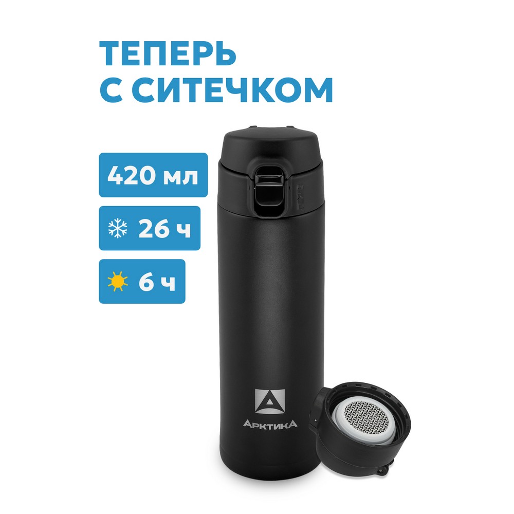 Термос Арктика 701-420 текстурный, черный, с ситечком