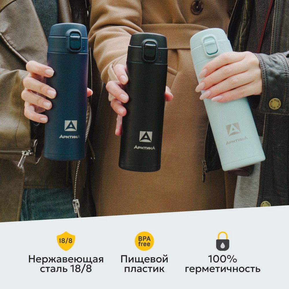 Узкий корпус выполнен из долговечной и прочной нержавеющей стали, питьевая система – из экологичного и безопасного для здоровья пищевого пластика (BPA free). На выбор доступно 3 универсальные расцветки.