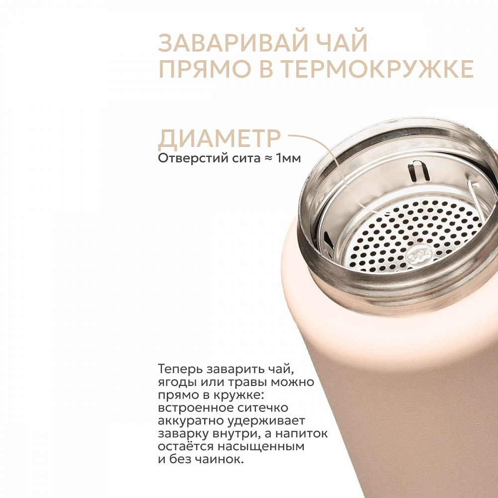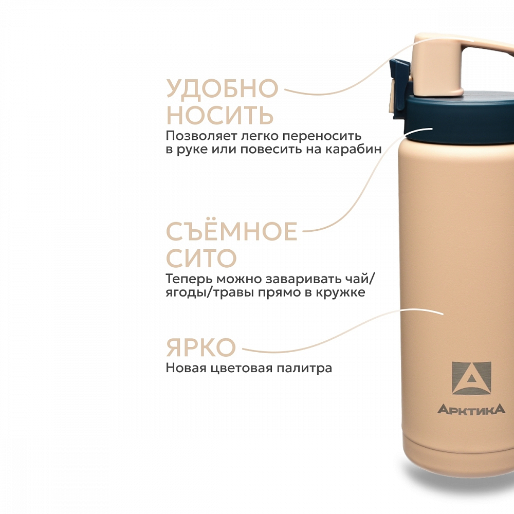 Термокружка для спорта и активного отдыха — идеальное решение для тех, кто ценит мобильность и всегда хочет иметь под рукой любимый напиток. Компактная форма повторяет силуэт спортивной бутылки: она удобно лежит в руке, помещается в подстаканник автомобиля и рюкзак. Благодаря надежному замку от случайного проливания можно смело брать кружку в дорогу, тренировку или поход — напиток останется внутри даже при активном движении. Встроенное съемное ситечко позволяет заваривать чай, кофе или травяные сборы прямо в кружке: крупная заварка, ягоды и дольки цитрусовых останутся в сите, а вы получите чистый насыщенный вкус без осадка. Откидывающаяся крышка выполняет функцию удобной ручки для переноски — простое и надежное решение, когда под рукой нет чехла или подстаканника. Термокружка изготовлена из высококачественной пищевой нержавеющей стали, которая обеспечивает надежную вакуумную изоляцию. Благодаря этому напитки остаются горячими до 8 часов и холодными до 20 часов. Компактные размеры и легкий вес (всего 260 г) делают модель незаменимым спутником для активного образа жизни.