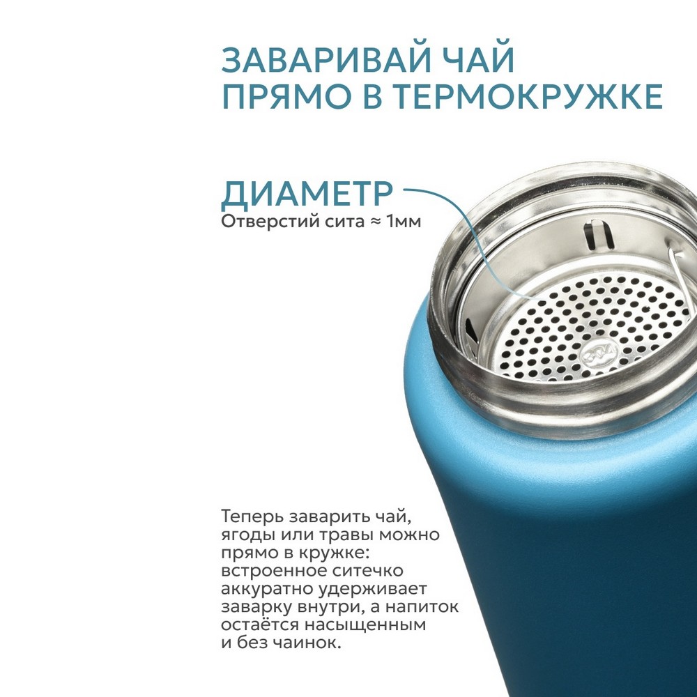 Термокружка для спорта и активного отдыха — идеальное решение для тех, кто ценит мобильность и всегда хочет иметь под рукой любимый напиток. Компактная форма повторяет силуэт спортивной бутылки: она удобно лежит в руке, помещается в подстаканник автомобиля и рюкзак. Благодаря надежному замку от случайного проливания можно смело брать кружку в дорогу, тренировку или поход — напиток останется внутри даже при активном движении. Встроенное съемное ситечко позволяет заваривать чай, кофе или травяные сборы прямо в кружке: крупная заварка, ягоды и дольки цитрусовых останутся в сите, а вы получите чистый насыщенный вкус без осадка. Откидывающаяся крышка выполняет функцию удобной ручки для переноски — простое и надежное решение, когда под рукой нет чехла или подстаканника. Термокружка изготовлена из высококачественной пищевой нержавеющей стали, которая обеспечивает надежную вакуумную изоляцию. Благодаря этому напитки остаются горячими до 10 часов и холодными до 58 часов. Компактные размеры и легкий вес (всего 360 г) делают модель незаменимым спутником для активного образа жизни.