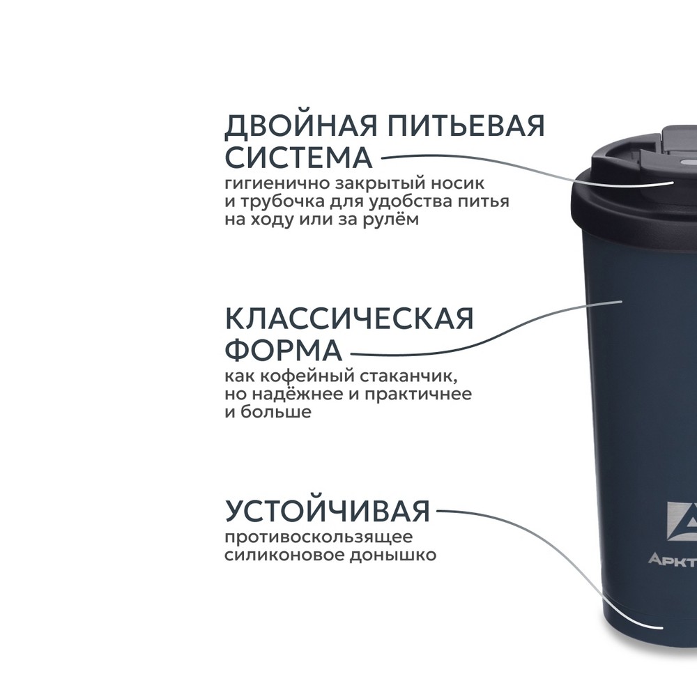 Классическая термокружка объемом 500 мл создана для тех, кто любит брать с собой большой стакан кофе, чая или любимого сезонного напитка. Эргономичная форма удобно лежит в руке, а небольшой ремешок обеспечивает дополнительный контроль и надежную фиксацию при переноске. Кружка помещается во все стандартные автомобильные подстаканники, что делает ее идеальным спутником в ежедневных поездках. Главная особенность модели — двойная питьевая система: вы можете использовать классическое питьевое отверстие или специальный носик с трубочкой в зависимости от типа напитка. Обе системы закрыты от попадания пыли и грязи, что гарантирует гигиеничность использования. Силиконовая накладка на донышке предотвращает скольжение и делает кружку более устойчивой на любых поверхностях. Корпус выполнен из высококачественной пищевой нержавеющей стали с вакуумной изоляцией, которая сохраняет тепло до 5 часов и холод до 25 часов.