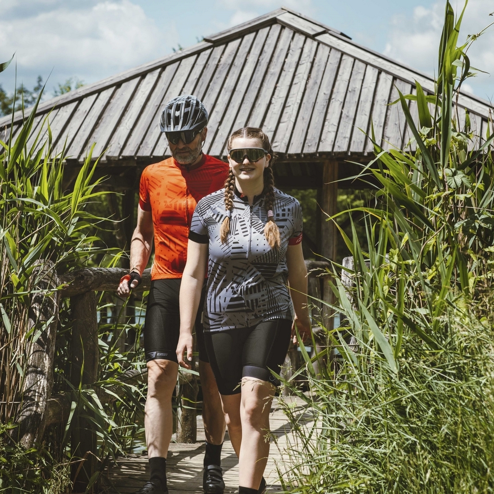 Женская веломайка с коротким рукавом и антискользящими манжетами.